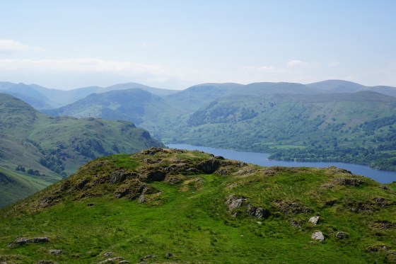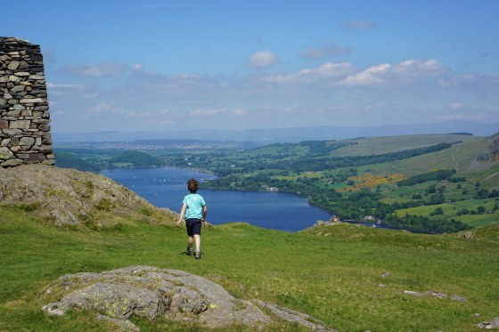A couple of days later, we were up high again, this time at Hallin Fell. We were heading toward Penrith to visit some family, and stopped along Ullswater to stretch our legs. This time we cheated a little as we didn’t have as much time, and parked pretty high up in the wonderfully remote St Peter’s Church near Howtown. It was still a steep slog in hot weather up to the summit cairn – this one being far too tall for the children to add a stone to the top!