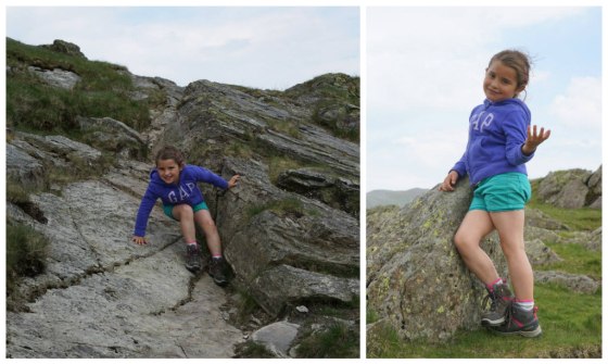 We had lots of fun on our descent route, clambering over rocks. Here’s Sophie remind us how strong she is with her daddy!
