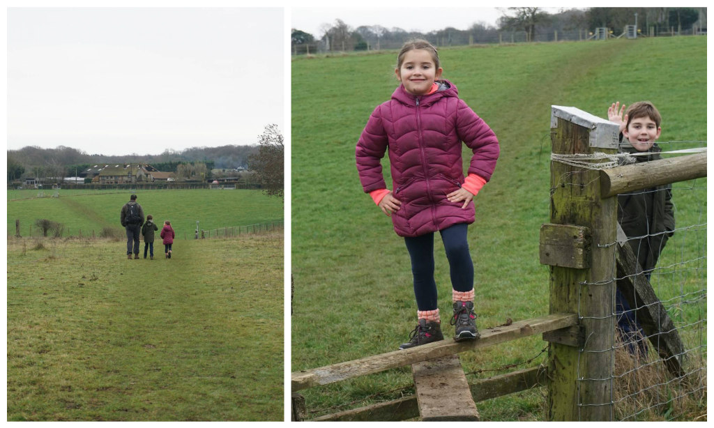 It’s within the M25 and is technically inside a London borough, but it felt like a million miles from the city. We parked by the 11th century church and pulled on our muddy boots ready for another squelchy stroll. But thankfully, this route was much less boggy! We immediately found ourselves crossing open fields, passing farms and climbing styles.