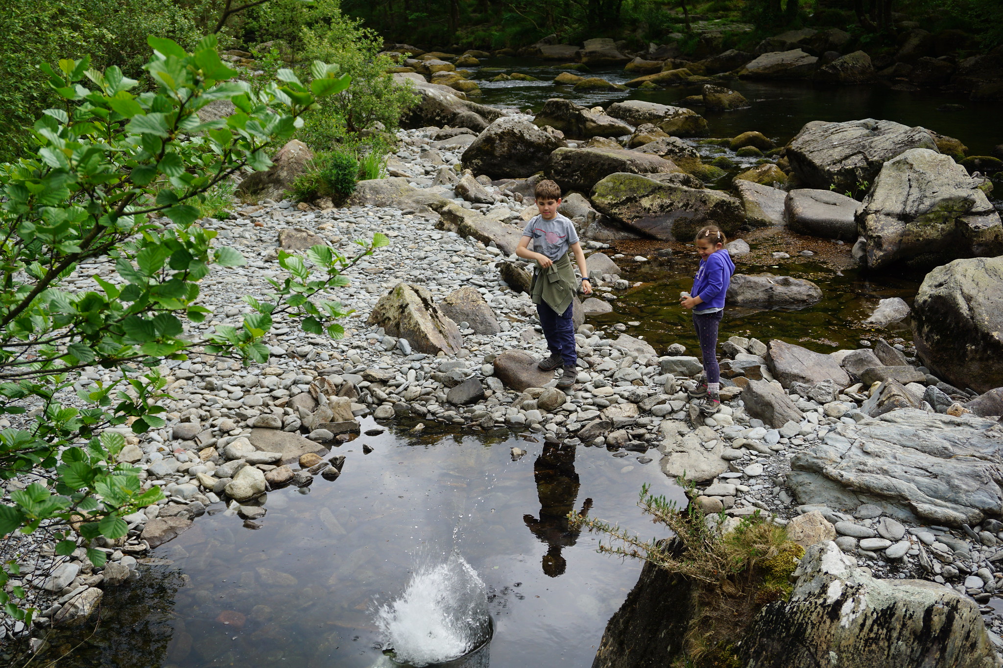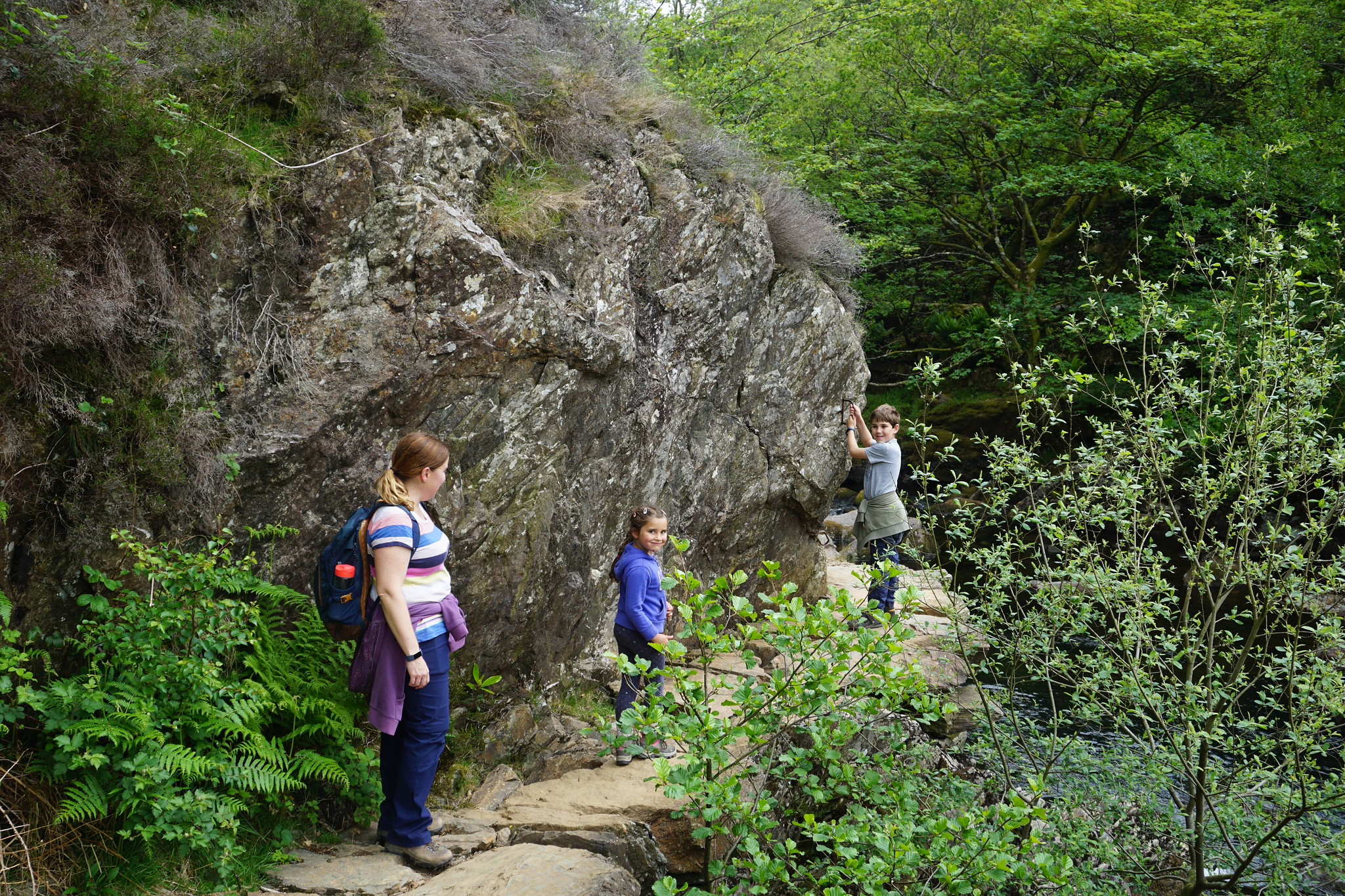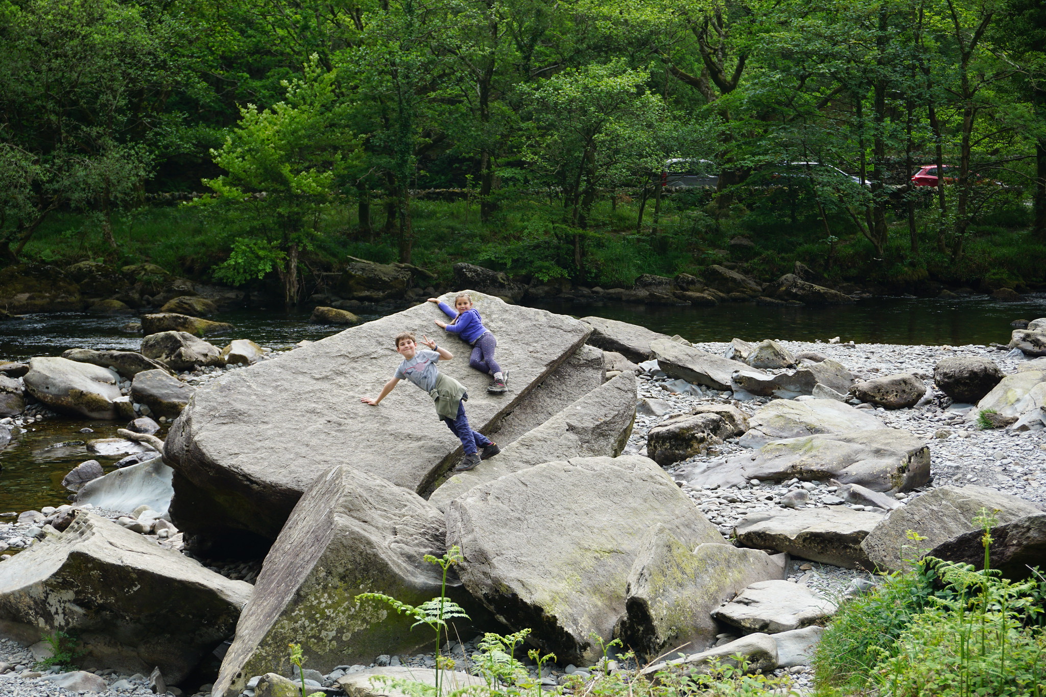 The final stretch of the walk was probably Alex and Sophie’s favourite – the route hugged the river closer and closer until we were scrambling along a narrow and rocky path. It’s an old fisherman’s path through the Aberglaslyn gorge and it was a lot of fun!