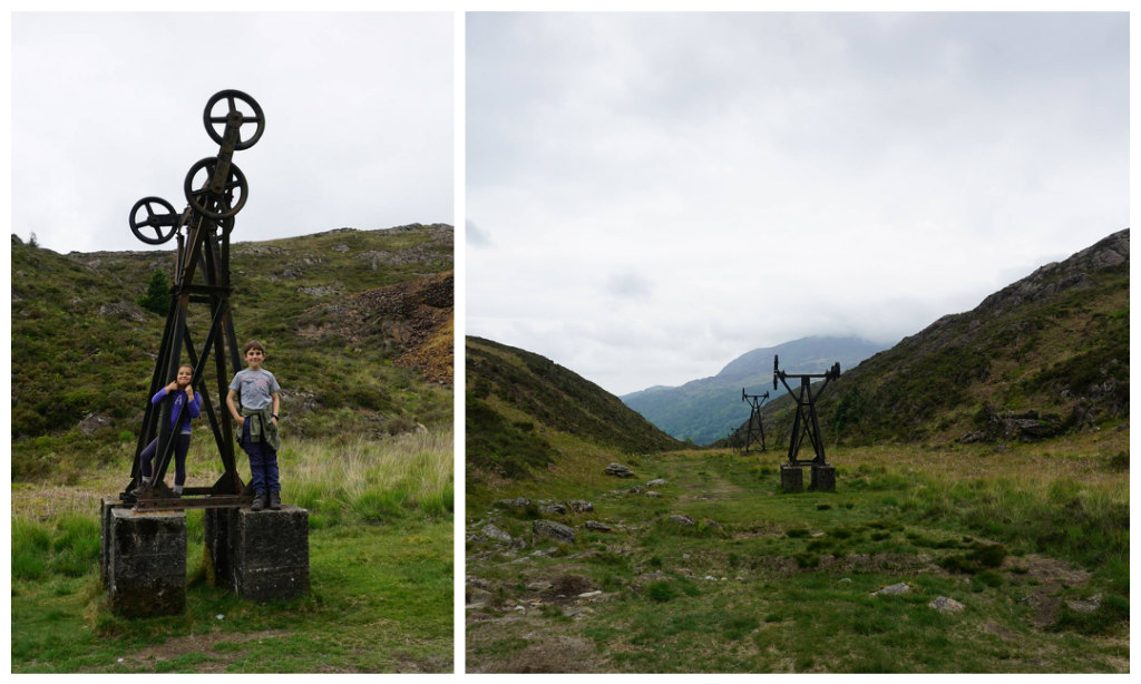 As we walked up the valley, signs of the area’s industrial past became apparent with the Cwm Bychan ropeway left from the old copper mining industry.