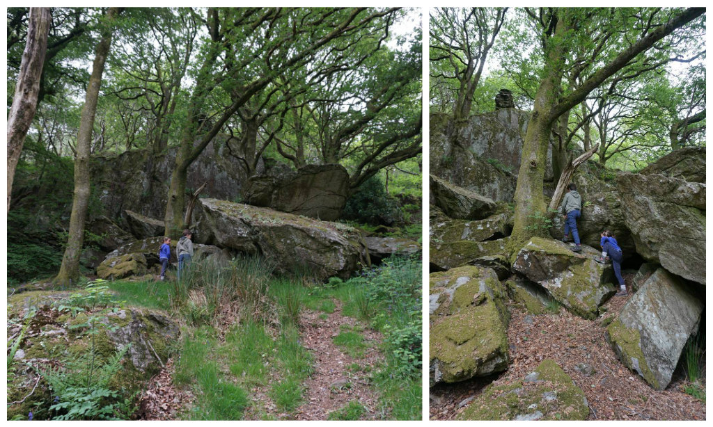 Almost immediately on leaving the car park, the children found some excellent climbing opportunities and immediately set to work scaling the rocks along the path!