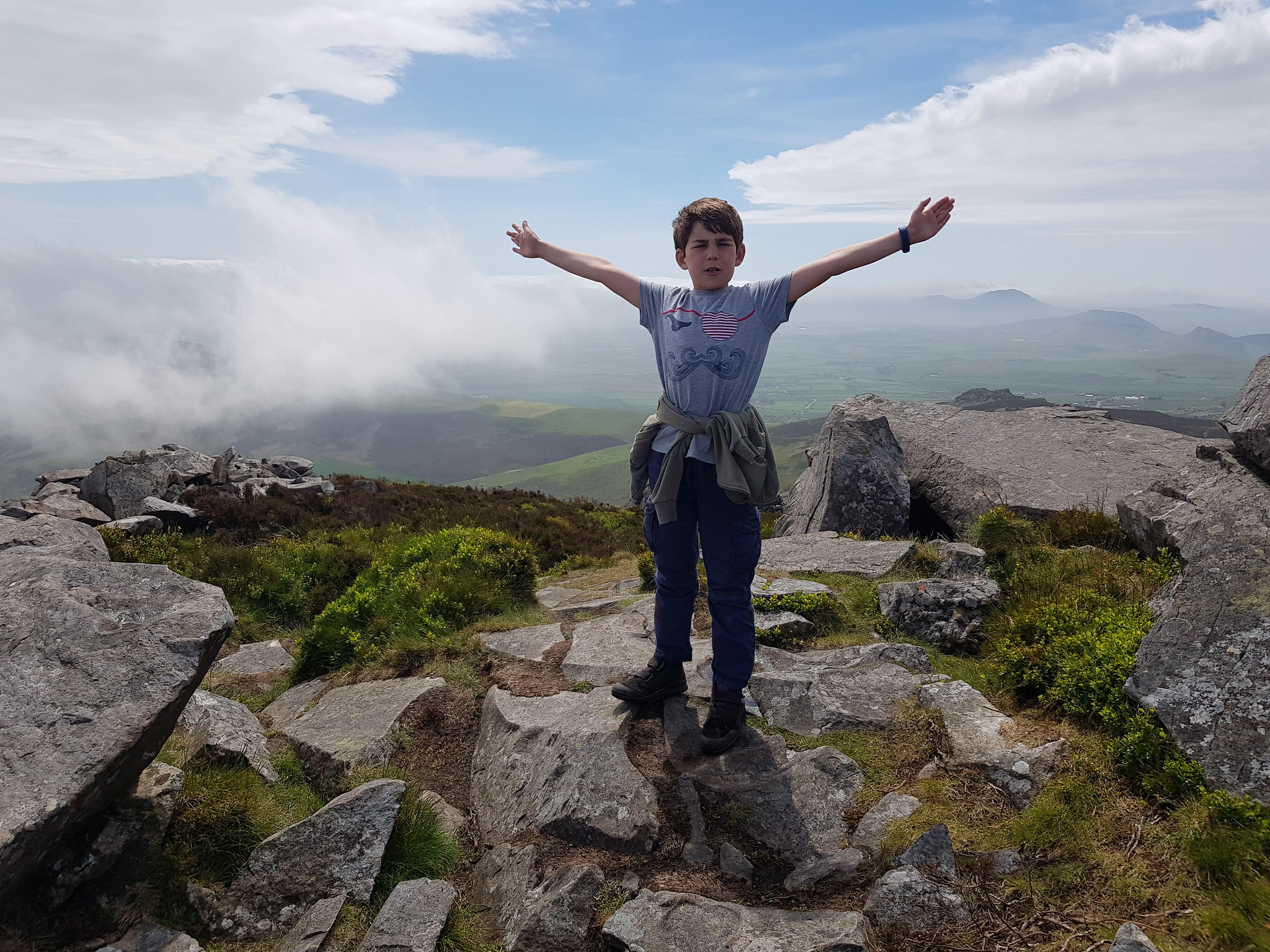 As the sky turned a beautiful view, we descended on the other side of the hill and stopped among the rocks for a picnic before starting to climb again – this time to the neighbouring hill of Tre’r Ceiri.