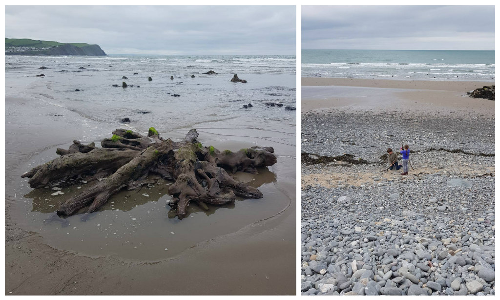 After our adventures up in Snowdonia, we took a slow route back to London crossing all of Wales to visit family near Carmarthen. We broke the long journey with a couple of stops along the Welsh coast, firstly in Borth to see the totally surreal ancient petrified forest remains that are exposed on the beach in the right conditions!