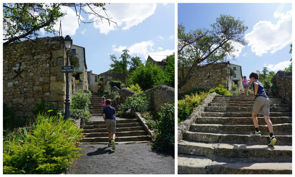 After we’d consumed our body weight in bread and cheese, we ventured into the town to explore. The children, of course, bounded up the pretty steps up to the chateau!