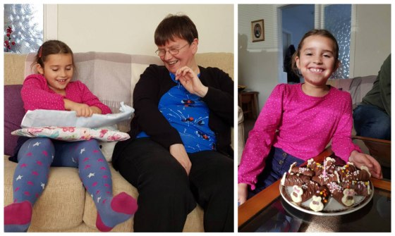 After all those new experiences, we also enjoyed the familiar. I always love taking Alex and Sophie to see their grandparents and great aunt while we’re in Scotland. And it was particularly special this trip to be able to celebrate Sophie’s 7th birthday up there with them. Sophie loved her Colin the Caterpillar cake!