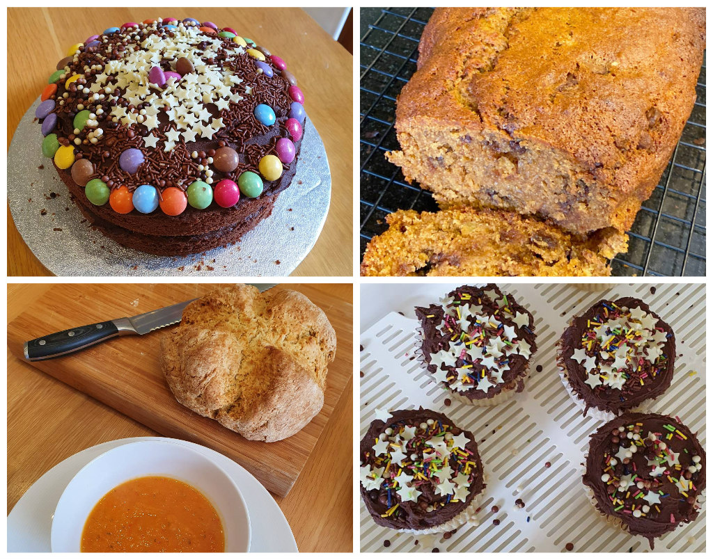 We’ve baked cakes (with some very over enthusiastic decorations), banana bread and some attempts at bread. Today I successfully made soda bread to go with some homemade sweet potato, squash and red pepper soup.