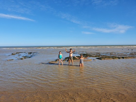 After the long walk back to Winchelsea, we paid a visit to Winchelsea Beach to cool off. It was so calm and quiet it was idyllic. The children played in the sea for ages, loving the rock pools that emerged as the tide went out.