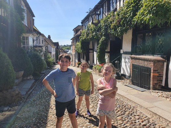 Later in the week, we attempted a longer hike – a round trip to Rye from Winchelsea. It was perhaps not sensible to do a 12km walk with no shelter on the hottest day of the year with three small people! But with an incentive of fish & chips and milkshakes in Rye, we got them there!