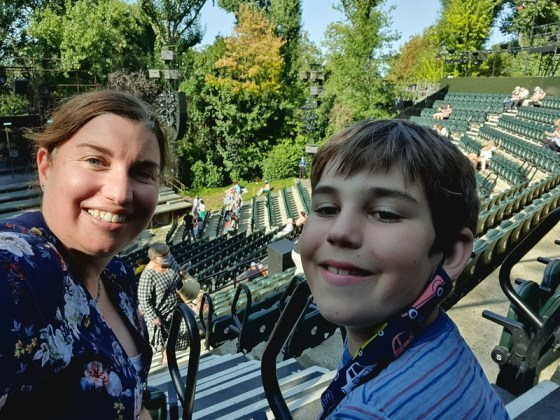 All the boys were set up with proper fixed-wheel track bikes:They were soon out being briefed on the track for their hour of fun. The coach was so good at getting them comfortable on their bikes and teaching them the basics.Soon they were off. They were challenged with a series of exercises to get comfortable riding on the banking, riding in a group and stopping without traditional brakes!Alex loved every minute of it, and his friends all said the party was ‘epic’! To end the session, the coach coordinated a kind of pursuit/elimination race. They all cycled so hard, determined to win and completely exhausting themselves. The final three in the race kept going for ages, and we were so proud when Alex managed to win! Here’s the sweaty, tired gang ready to head home for pizza!Back at ours, we ordered in loads of pizzas and ate cupcakes together. They’re such a tight group of friends, and I love that they got to have so much fun together before the new Covid-19 restrictions came in. Another highlight of Alex’s birthday weekend was a special trip for the two of us. I’m so thrilled that Alex shares my love of the theatre, so I was delighted to surprise him with a show for his birthday. After months of the West End being closed, the Regent’s Park Open Air Theatre ran a limited run of Jesus Christ Superstar.So we cycled up to London together on a gloriously sunny Sunday afternoon, stopping for Greek food and enormous ice creams in Covent Garden en route.