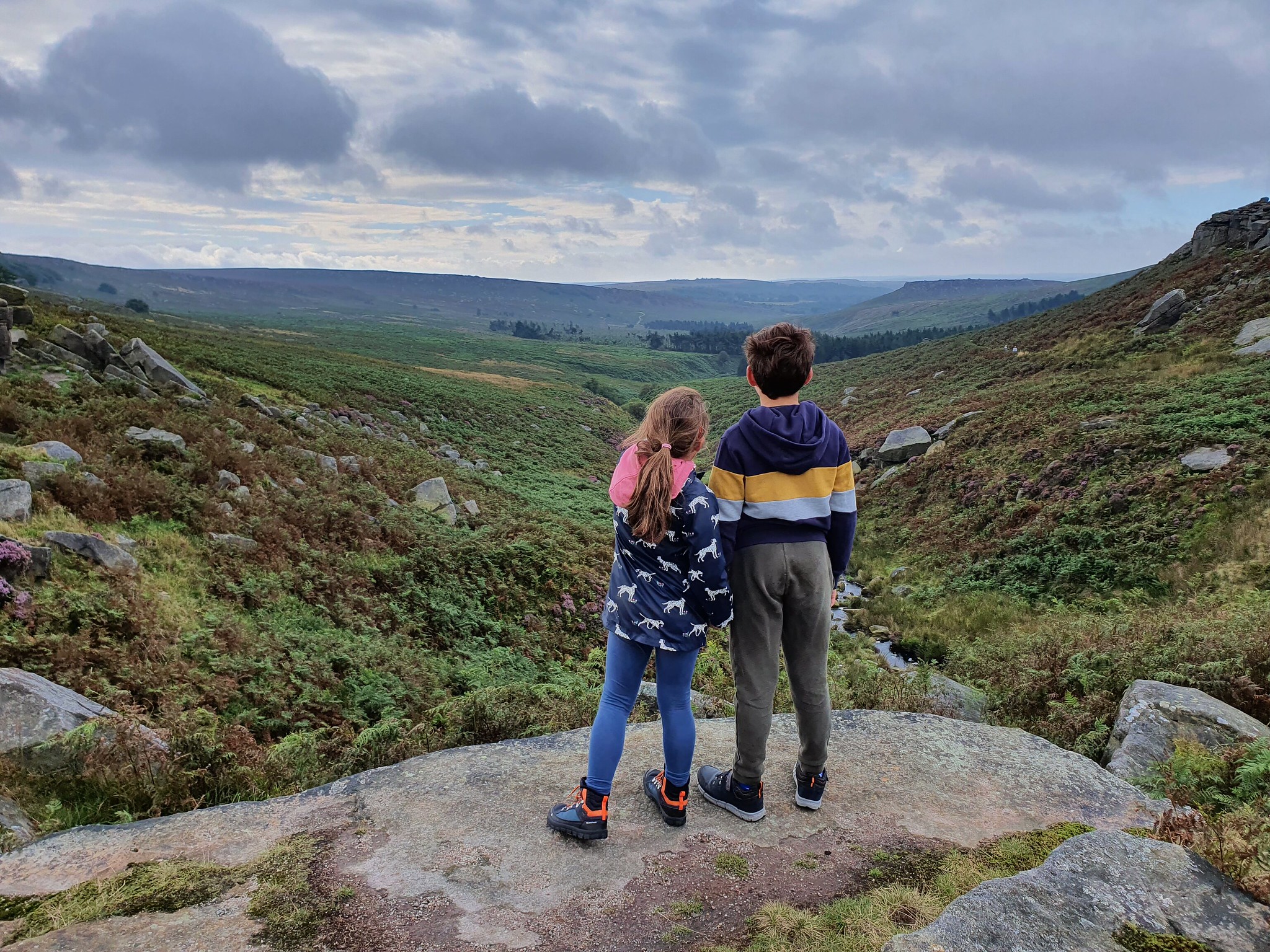 We knew the kids enjoyed a good scramble, so I looked for somewhere they could experience some of the unusual Peak District rock formations – and I settled on Burbage Rocks. We parked at the free car park at Upper Burbage Bridge and immediately admired the gorgeous views.