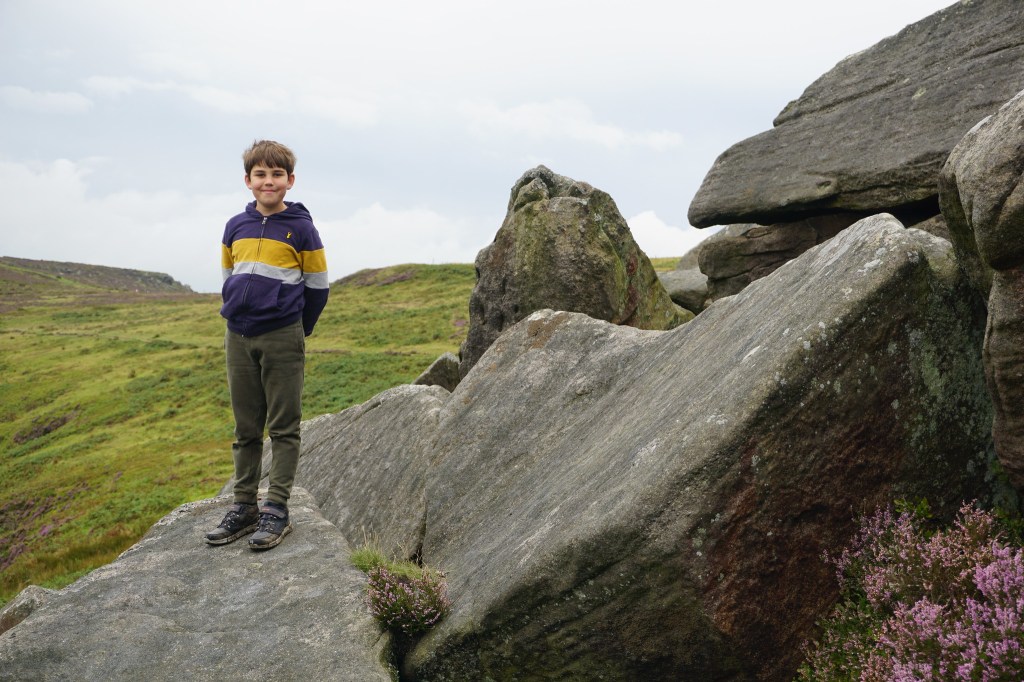 A few days later, the children begged to go back – and we didn’t hesitate. Leaving ourselves more time on this second visit, we planned to follow a circular route, starting back at the rocks around Higger Tor, but then walking in a loop past the North Burbage Rocks to watch the more serious rock climbers.