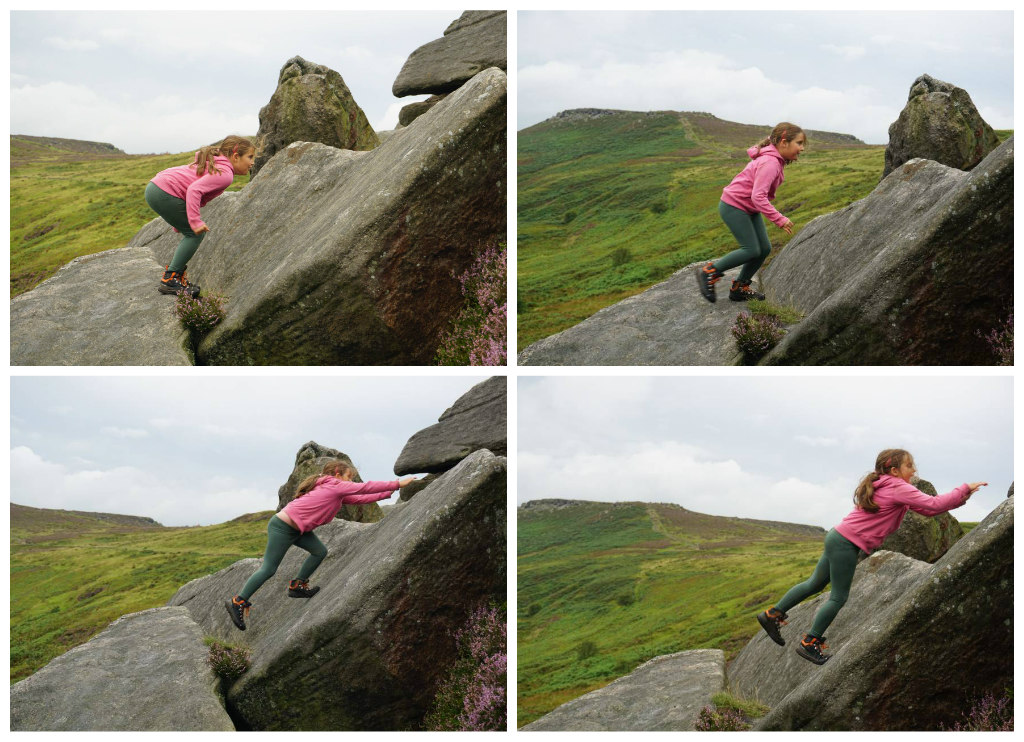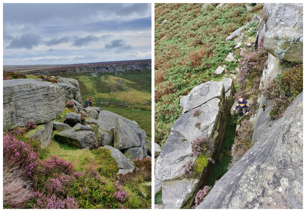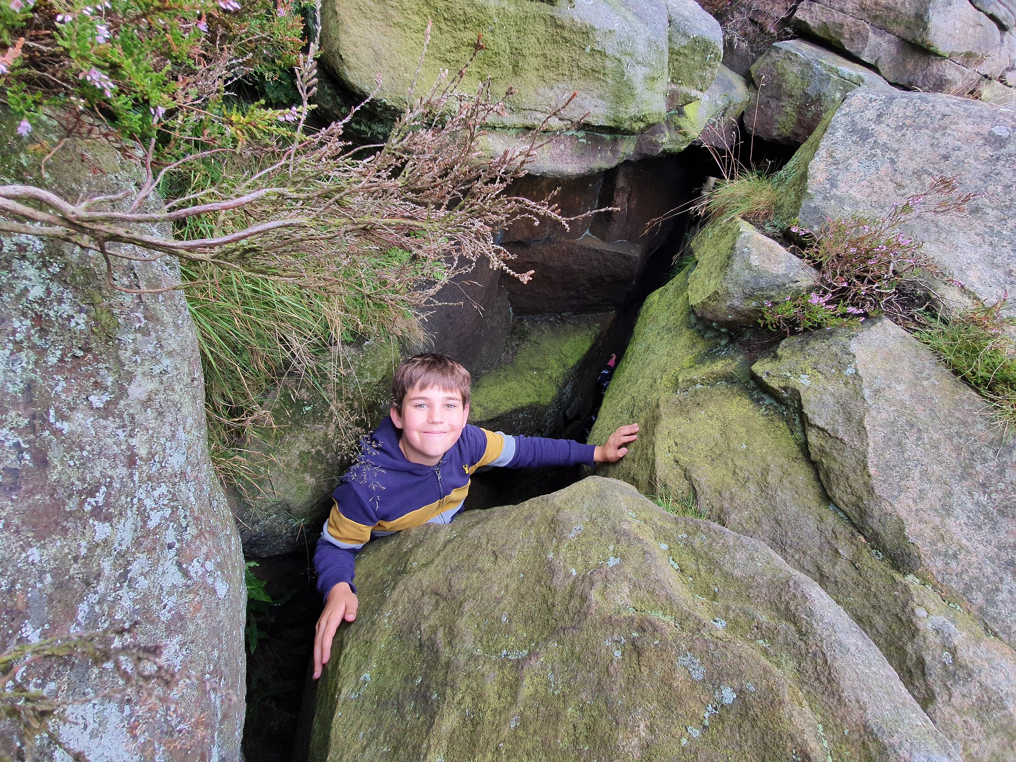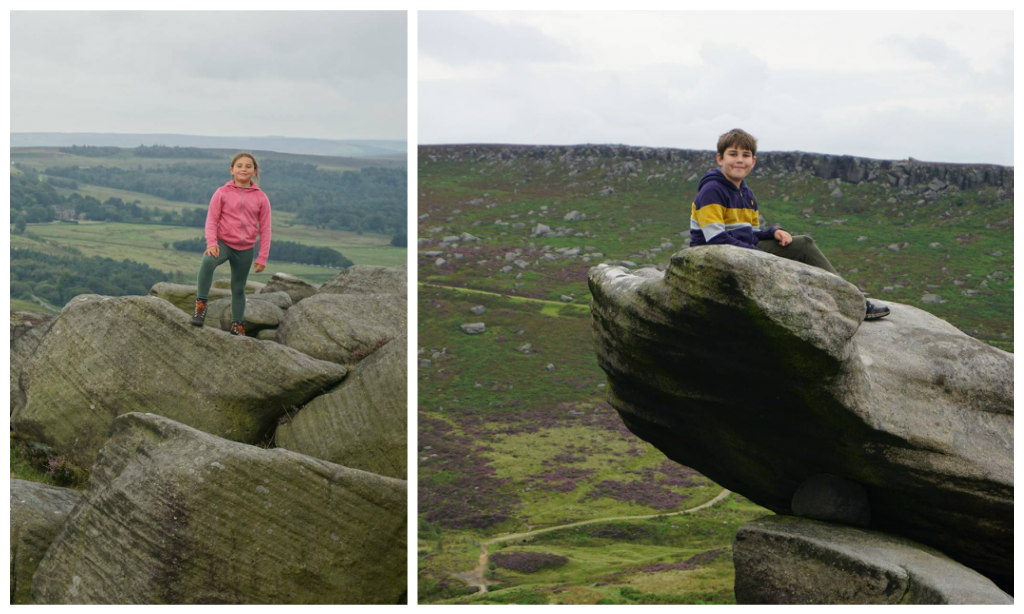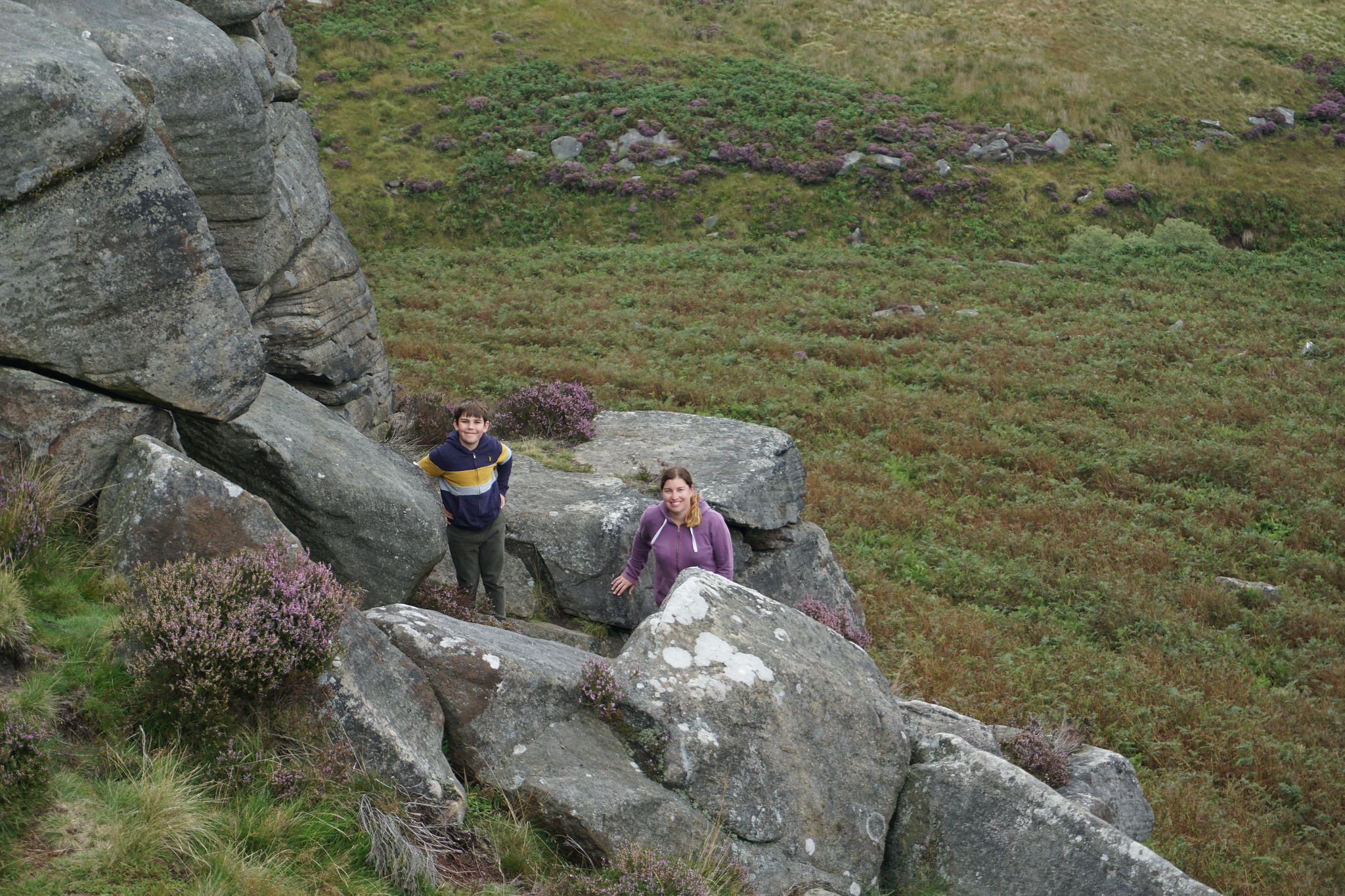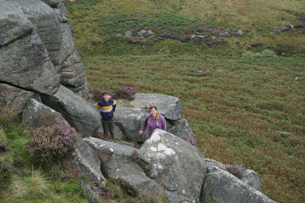 We started following the path towards Higger Tor, one of the landmarks of the northern Peak District, and quickly found ourselves amidst huge boulders. Immediately, the children set about exploring – can you spot them here: