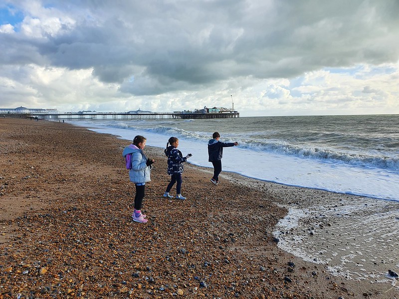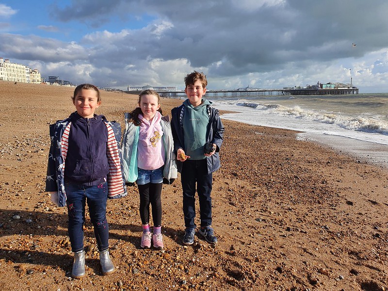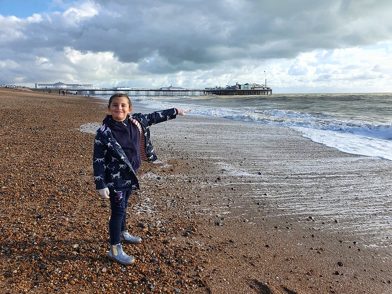 Her birthday fell during half term, and while Matt had to work, I had the day off with the kids. With the weather bright, and day trips outside still acceptable, I took the children on a day trip to Brighton to play at the beach.