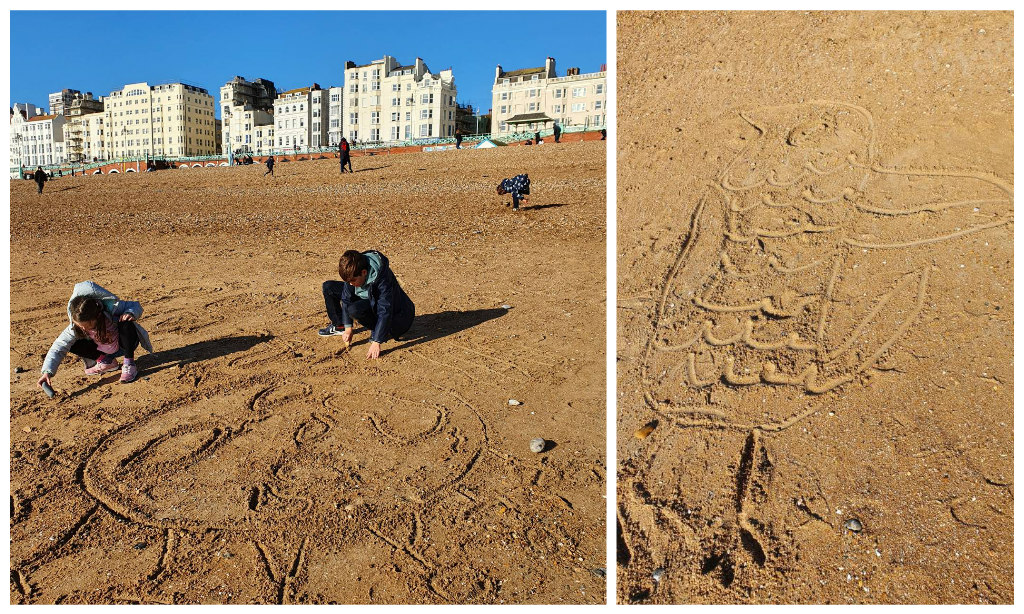It was easy to while away a couple of hours in the sunshine. We even got quite artistic in the sand!