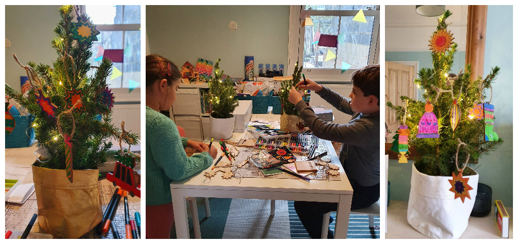 And my mum sent us all mini Christmas trees, with decorations the kids could colour in for theirs. We had such a fun morning decorating them.