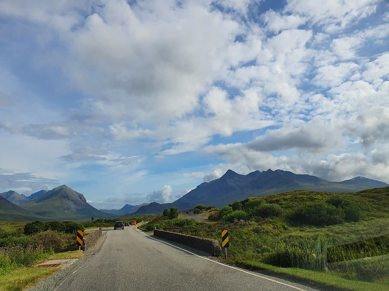 The drive from Kylerhea to our accommodation was gorgeous – typically narrow Skye roads and unbelievable views. We finally got a glimpse of the mountains from the car and we weren’t disappointed!