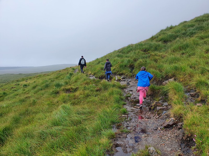 It was pretty boggy walking, requiring us to cross lots of little streams – but it was great fun despite the grey skies.