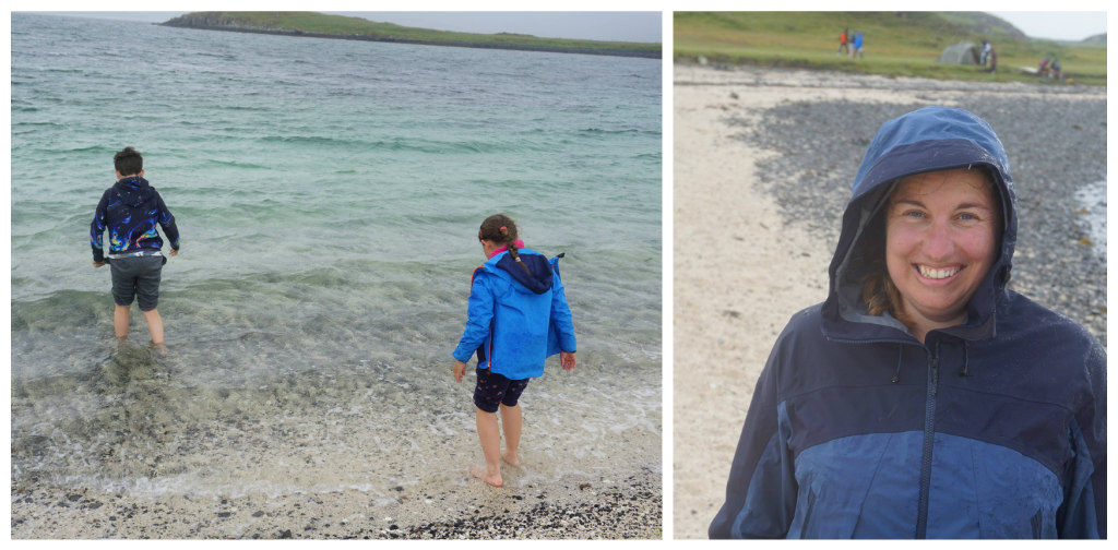 The kids still managed a quick paddle, and I was able to recreate my honeymoon picture as the rain began! It was quite a torrential hike back to the car which I think we found more amusing than the kids!