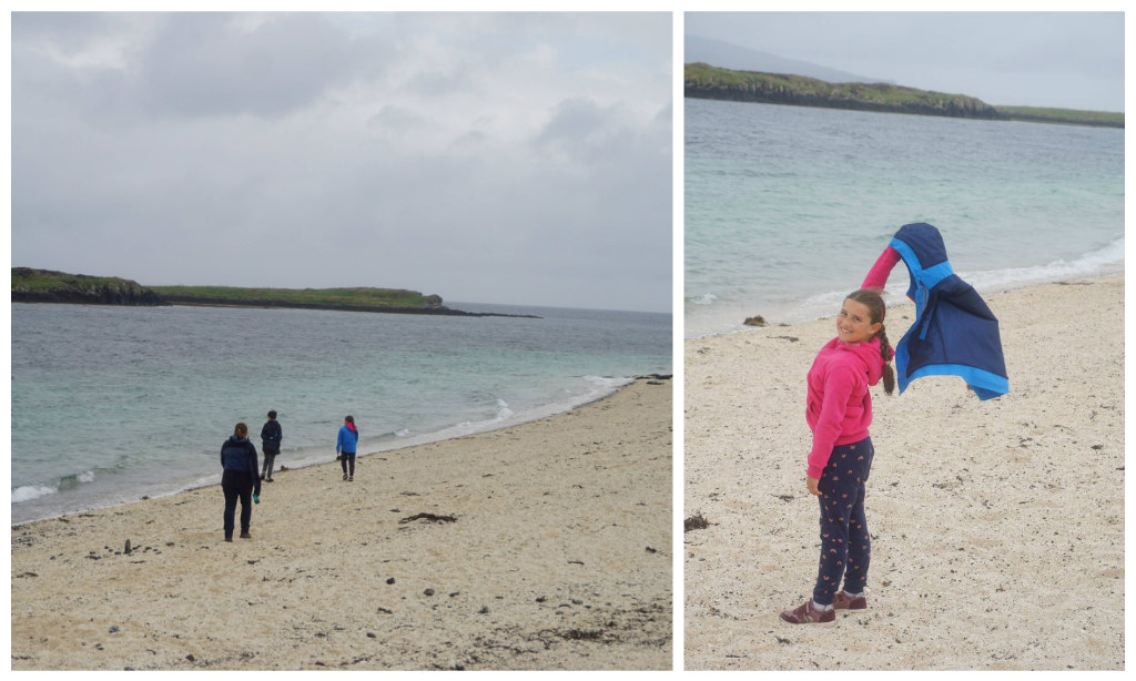 Once we’d finally exhausted the grounds at Dunvegan, we continued north to the Coral Beach. An easy walk of a couple of kilometres from the car park, the beach looks bizarrely tropical with white sand and turquoise water. It didn’t feel particularly tropical as the weather became more stormy for us by the minute!