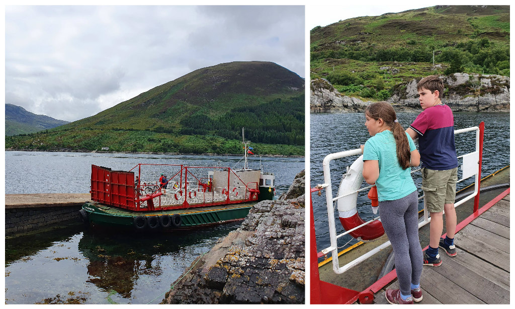 Following a recommendation from family, we opted not to travel to Skye by bridge, and instead took the “Glenachulish“, the last manually operated turntable ferry in the world! The Kylerhea straits are the closest point between Skye and the mainland and the tiny car ferry runs back and forth throughout the summer months. We watched it sail over to the mainland before boarding for our crossing. As soon as we set sail, we spotted loads of seals bobbing about in the waves. The kids loved spotting them popping up (but sadly none of our photographs came out!)