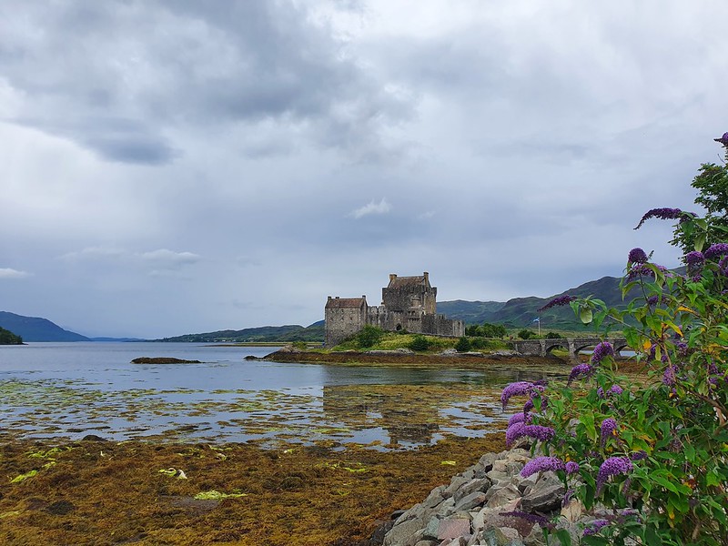We were sorry to bid farewell to Skye, but we had an epic drive ahead of us, so we were excited too. After our brilliant ferry arrival on the island, we took a more conventional route off via the Skye Bridge which gave us the opportunity to stop and have a quick look at one of the most photographed castles in Scotland – Eilean Donan. It looks particularly dramatic against the moody skies!