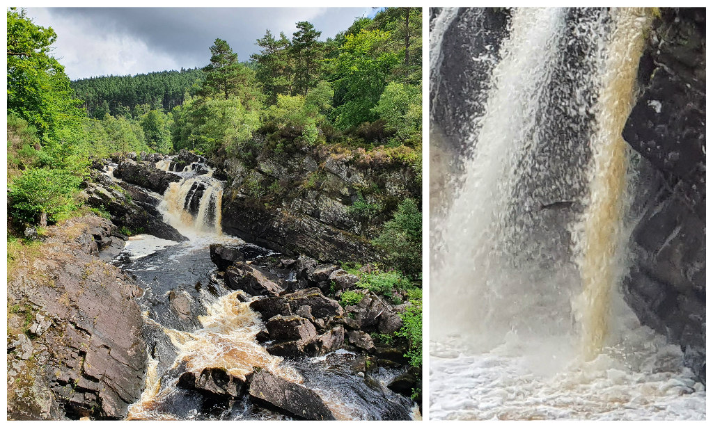 The next day wasn’t quite so sunny, so we headed inland to watch salmon leaping at Rogie Falls. We loved the walking routes through the trees, and spent ages watching the salmon desperately trying to get upstream. It’s quite mad to watch. Can you spot the leaping salmon in the right hand picture below?!