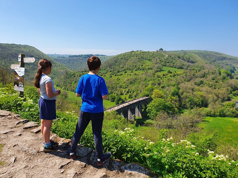 We locked up the bikes to climb up to get a good view of the viaduct at Monsal Head – an iconic Peak District view.