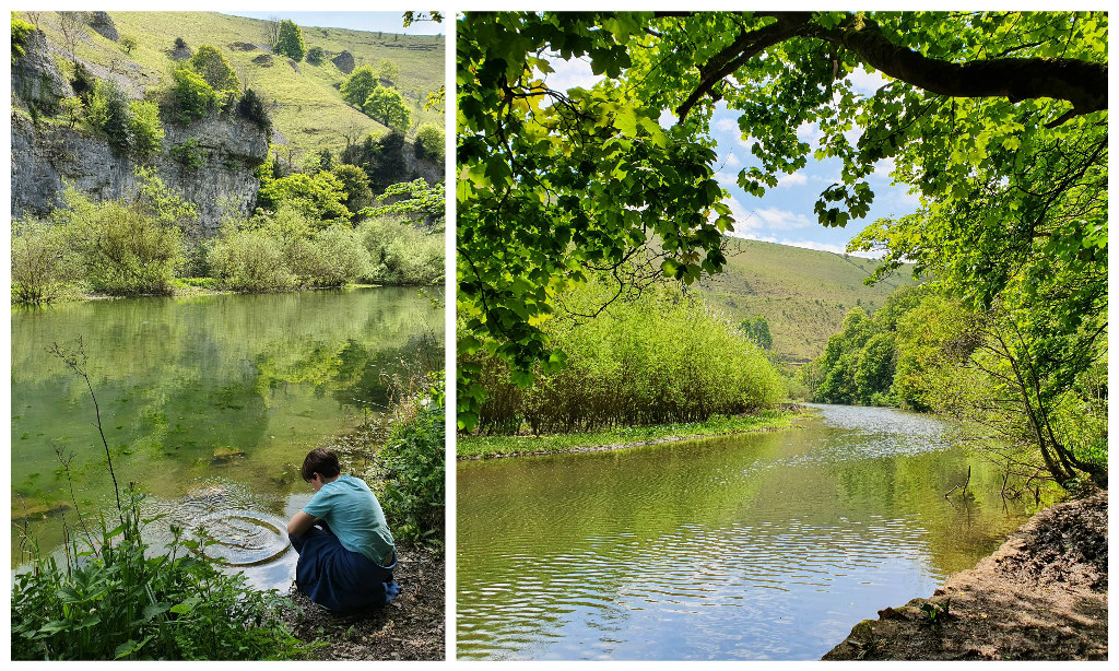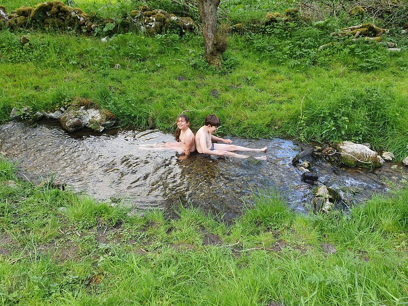 We were all hot after the bike ride, so we headed back to Tideswell Dale to let the kids have a paddle. They took it a bit further, stripping off and braving the freezing water!