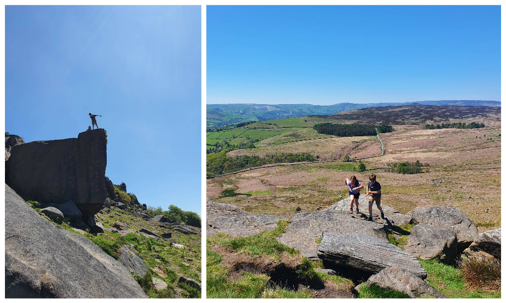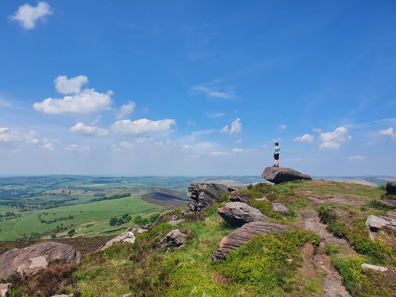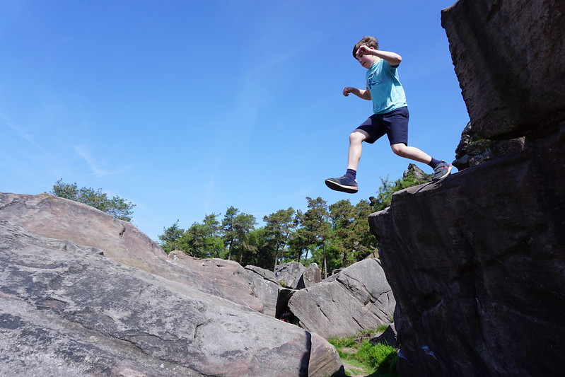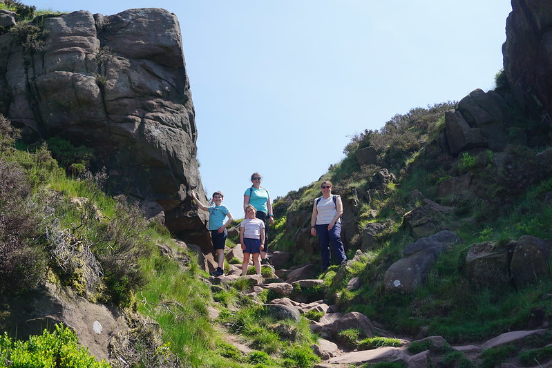 After our long, hot hike on the Roaches, we took it slightly easier on day 5, revisiting one of our favourite spots in the Peaks – Burbage Rocks (we visited a couple of times back in 2020). The kids adore the scrambling and jumping, so we easily whiled away some time in the sunshine.