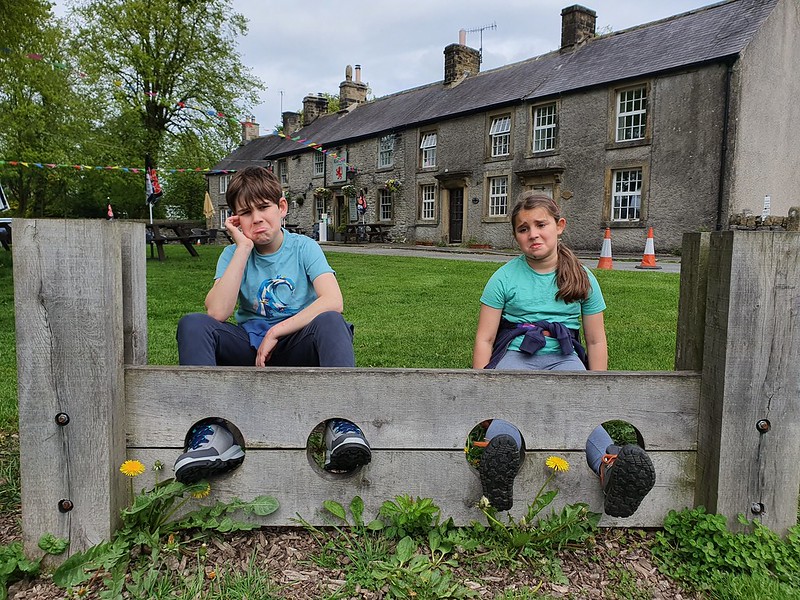 We started out staying local to our village, doing an 11km circular walk from Tideswell (very similar to this route, but starting and finishing in Tideswell, not Litton). We passed through gorgeous villages, one complete with stocks where we were tempted to leave the children!!