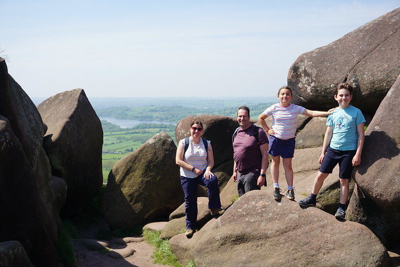 On Jo’s last day with us, we headed into Staffordshire to walk on The Roaches, a gritstone ridge. It was another long climb up to the ridge, but we loved the rock formations (and the kids, of course, got in as much scrambling as they could along the way!)