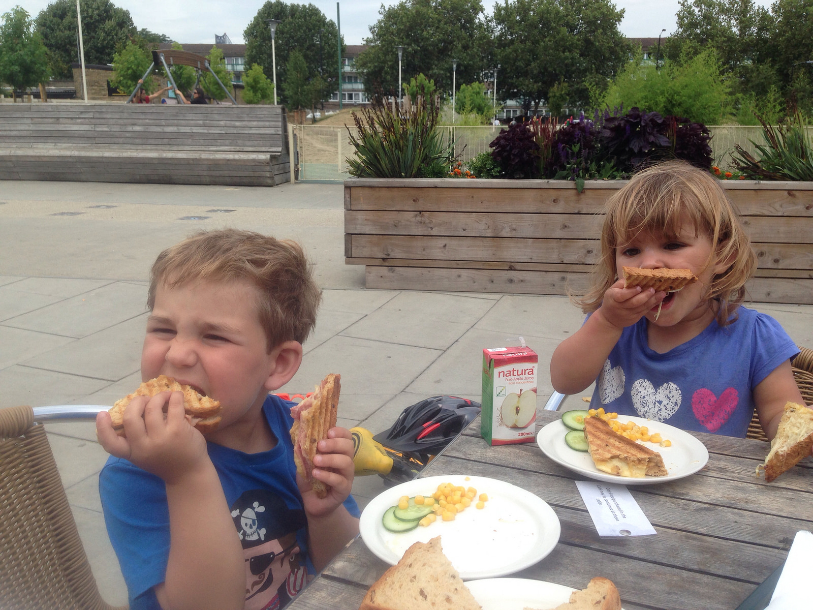 The weather was glorious so we spent much of the day in Brockwell Park. We’d heard there was a children’s theatre performance taking place in the walled garden, so we headed up there to see what was going on. Turned out it was a production called “Goldilocks and the Three Endings” by a local company called Sixteen Feet. An “interactive fairy tale”, the children in the audience got to choose how the story progressed.